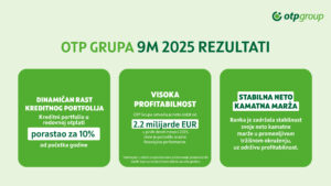 Rezultati OTP Grupe za prvih devet meseci 2025: Neto profit 2,2 milijarde evra